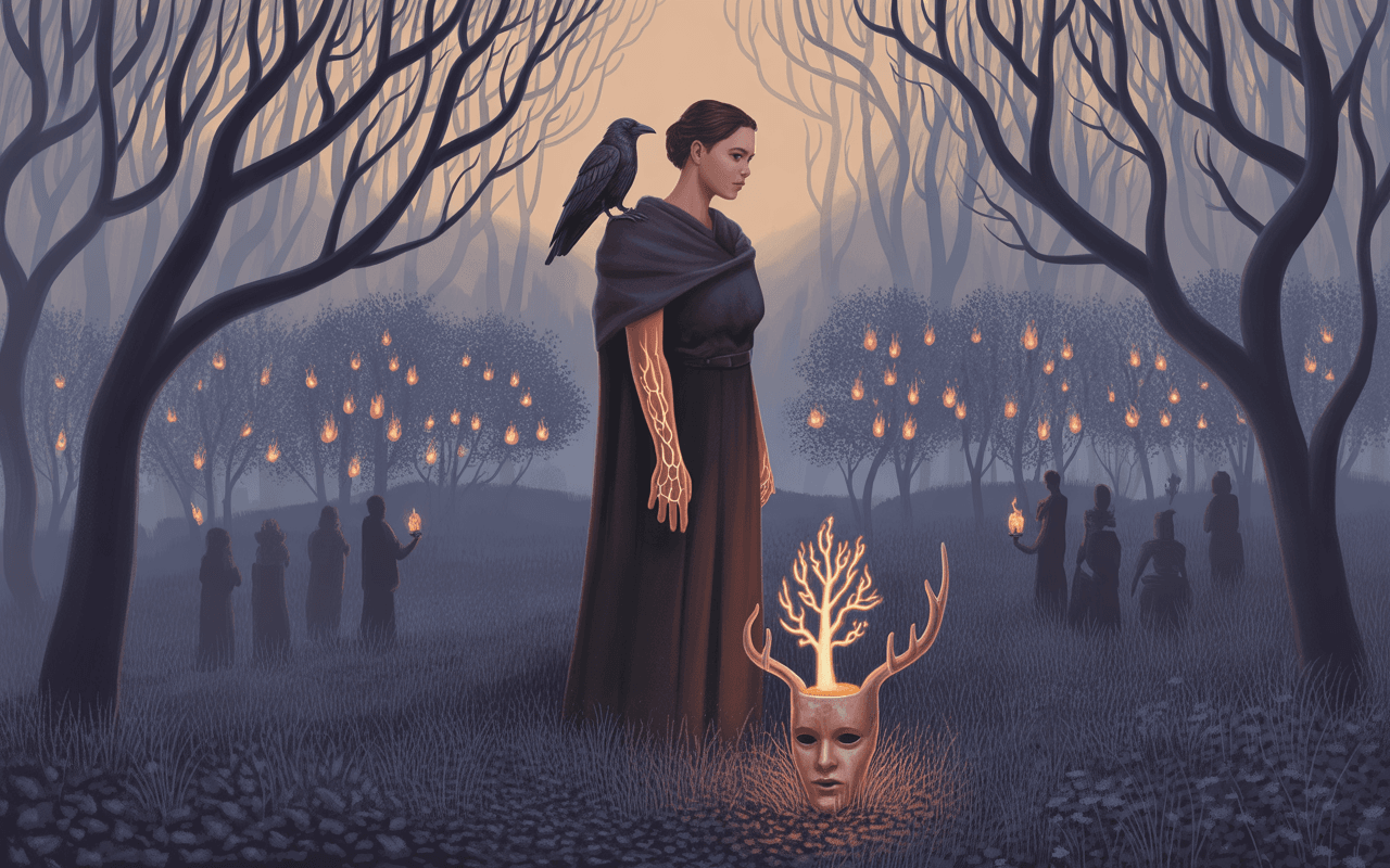 The first ember fell from the sky on the twelfth night of Hollowmonth. It drifted past Mira’s window in a slow spiral, glowing orange like a cinder plucked from some celestial hearth. She didn’t move to catch it. She never did. Not anymore. Outside, Embermoor slept uneasily beneath its usual blanket of soot. The harvest fires had already begun near the orchard rim, casting long shadows across the charred earth. Trees bent inward as if listening to some forgotten lullaby. The scent of burnt fruit and damp ash crept through the thatch walls of Mira’s hut.